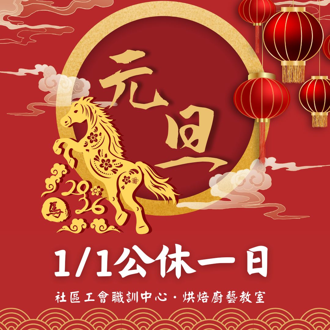 2026-01-01 【2026年元旦公休通知】01/01 (四) 共一日 【2026年元旦公休通知】 公休日期:01/01 (四) 共一日 期間工會與教室將暫停開放,不便之處敬請見諒 台南社區工會-烘焙廚藝教室 感謝您 回上一頁