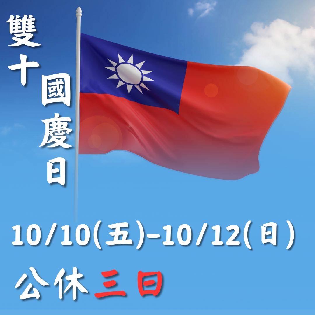 【雙十國慶公休公告】10/10(五)~10/12(日) 公休三日