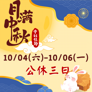 【中秋連假公告】10/04 (六) -10/06(一) 公休三日
